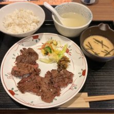 ラストオーダー(14時30分)2分前に飛び込んだ❢。 サービス牛たん定食1100円。 厚みはそれなりだけど、風味と味わいは楽しめるッスよ🤣。 麻布十番で仙台牛たん、オススメッスよ。