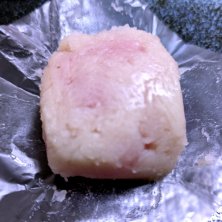 雪中梅 配送してもらったので、移動中に揺れたのでしょう。きんとんが均一化されて原型が分からなくなってますが、こちらは道明寺を芯を赤く染めた白小豆餡で包み、真っ白な練りじょうよのそぼろをまぶし、ところどころに下地の赤が残るきんとん菓子です。そして梅の木に雪が積もり、その間から咲いた梅がところどころ覗ける様を現した季節感溢れる美しいお菓子です。そして、こちらのいつものきんとんとは違って、練りじょうよと道明寺の味わいに加えて白小豆餡の旨味が加わったとっても美味しいお菓子です。