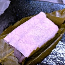 桜餅 上品な漉し餡を薄くてしっとりした焼き皮で包み、桜の葉で2重に包んだ春限定のお菓子です。しっとりとして、桜の葉が焼き皮から離れない程で、いつもは葉っぱを完全に剥がして食べるのだけど、今回は桜の葉が残っている状態でいただきました。桜の香りが素敵です。そして上品な漉し餡が本当に美味しいです。