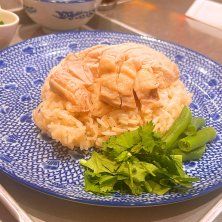 出張の帰りに駅で途中下車してごはん(๑´ㅂ`๑) ここのカオマンガイは普通の茹で鶏のほかに揚げ鶏のもあって欲張ってダブル乗せw タレも4種類あるから好みで色々試せるのがいい〜