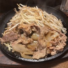 池袋の『牛焼きジョニー』、熱々鉄板に牛バラ肉ともやしたっぷりのガッツリ飯です。 ジョニーの牛焼き 950円
