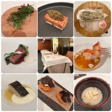5年3ヶ月ぶりにスリオラへ。 初めて行った時はまだ麻布十番にある頃で、 フィデウアを初めて食べた思い出のお店です😊 通算で5回目。初めてテーブル席に。 ここはライブ感のあるカウンター席が好きなので、 ちょっと残念でした.... 徐々に埋まるテーブル席の客は全て外人カップル。 例の規制のせいか中国系はいませんでした。 静かな客たちで一安心♪ おまかせコース1本。 12品もあったので8品のみコラージュ。