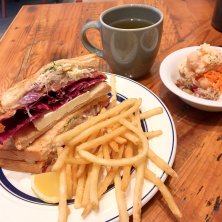 木曜日のランチ。 サーモンクリチサンド🐟 ボリューミーでお腹パンパン。 とってもアメリカンなサンドイッチでした🌮 サラダはバイキング形式です🥗 関係ないですがローラアシュレイが撤退するそうですね。ベッドリネンだけでも買っとこうかなぁ〜 お札に羽が生えてきたー💸 笑