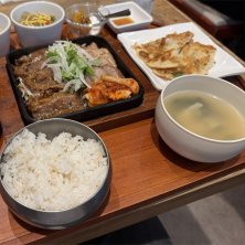 ランチは娘のリクエストで韓国料理 サムギョプサルと牛カルビ定食でした