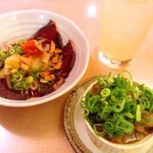どて焼き。 ネギたっぷりのどて焼き。もちろんビールと一緒です。