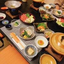 奈良十津川温泉、3度目の来訪。 小さな旅館だけどお料理も温泉も大満足。静かでゆったりできる宿です。 今回はみかん鶏のしゃぶしゃぶをセレクト、地酒の八咫烏と共に。