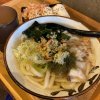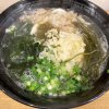 ねぎ塩チャーシュー丼680円大盛り無料 炊き込みごはんの上に豚角煮・半熟玉子!ねぎ塩チャーシューは別皿で、つくねのスープと甘塩っぱいタレの奴