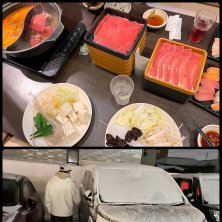 昨日は、三男の誕生日 今日は、旦那さんの誕生日 お祝いでご飯食べに行きました 最近、テレビに出て来るので行ってみたくなり😄 今朝も、平日は時間無制限ってやってたなぁ お腹いっぱい食べられました🙂 食べている間に雪❄️積もってました😅