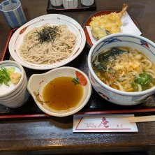 今日は夜に茨木でライブがあったので早め晩ご飯を石挽き蕎麦のお店で。二色そば、ざるそばにかけうどんに天ぷら。天かすは頼むと無料で出していただけました。 うどんも美味しゅうございました。