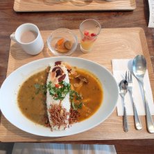 21世紀美術館に入る前にすぐ近くのカレー屋さんで腹ごしらえ(^-^) たまたま入ったけど、ことりっぷの絶品カレー10選にも選ばれたお店だったようです。 ルーは2種類選べて、トッピングも2つまでOK。 海老とアボガドとモッツァレラチーズの冷製カレー&チキンカレー 温泉卵とフライドオニオンをトッピング♪ スープとミニデザートも付いてて満足度高かったです!!