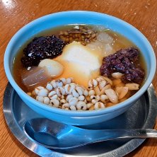 豆花!台湾のスイーツ 豆腐に黒糖のシロップ たくさんのお豆〜〜 おいしい!!! 健康に良さそう(笑)