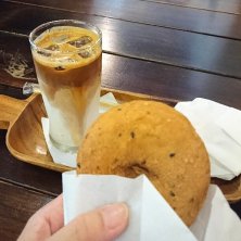 ごまきな粉ドーナツ 杏仁ラテ フワフワおいしー😆