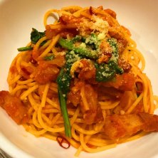ほうれん草とパンチェッタのトマトパスタ。