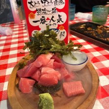 沖縄グルメ 5,400円 こちらのマストのまぐろミックス、塩パン、石垣牛握りにラフテーを注文 全てがとてもおいしい! 特にまぐろの鮮度が素晴らしく、ワサビを付けて海苔と一緒にいただくと食べたことのないくらいの絶品です シーズンオフのこの時期でも満席の人気店です