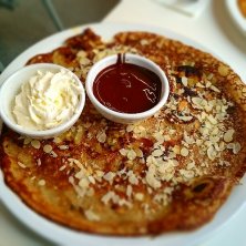 朝早く目が覚めたから近くの『Pancakes Amsterdam』行って食べてきました。行列店だけど、8:30は空いてました。オーダーしたのは、 カマンベールチーズ、山羊のチーズ(追加トッピング)、チコリ、ハム、クランベリーソースのsavoury (ガレット風のオランダのパンケーキ) 9:30くらいにお店を出ようとしたら既に行列が10人くらい。噂通りの大人気店!
