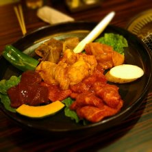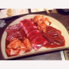 シャトーブリアン、ヘレ、特選ロース、特選はらみ、特選上カルビ、焼きしゃぶしゃぶ 表面を焼いて、中はレアでとろけました。