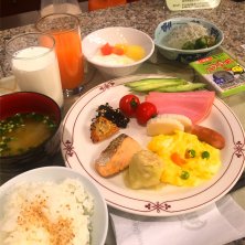 久しぶりの朝食バイキング 盛り方イマイチ…