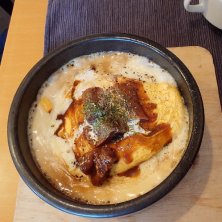 富山ランチ ◎サーモンとキノコのクリームソース 石焼オムライス サラダ、スープ、デザート付 ◎呉羽梨ジュース ダイエット宣言しておきながら…の投稿ですが(。-∀-) 今週は平日のうち4日出張で、、出張はいろいろ頂くので調整難しいですね。。富山ではお魚が多いですが今日は珍しく洋食を。 ジュージュー熱々で食べるのに時間かかりましたが、卵トロトロ、クリームソースたっぷりで美味しい♡ご飯は半分で。 呉羽梨は富山名産の梨。甘ーいけどさっぱりで美味しい(*゚▽゚*) ごちそうさまでした♡