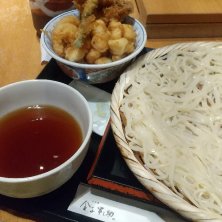 稲庭うどんと天丼 天ばら飯 稲庭うどんの方は初めてだ。うどん用のトッピングがいろいろありついつい食べ過ぎてしまった。先にうどんを食べるべきか、天丼を食べるべきか、それが問題だ。