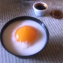 蒸しプリンに牛乳寒天とアプリコットが乗っかったやつ。黒蜜をかけて食べるんだけど、目玉焼きみたいになる☆