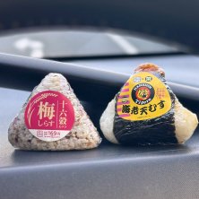 車中飯 *海老天むす🍤 *梅とおかか 所用の後、おにぎり🍙を購入 前回は売り切れていて食べそびれた「海老天むす」 今回も店頭にはなかったけど声をかけて出してもらった 「梅とおかか」梅のところが塩っぱいので、おかかのみのところは市販のものより薄味 それが美味しかった〜 2個ペロリ😋と食べてしまった