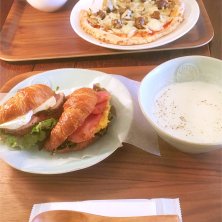 今日もお散歩しながらパン屋さんでランチ(๑´ڡ`๑) クロワッサンサンドとカブのポタージュ。 デザートもついて、珈琲もおかわり自由。 美味しかったからまた来たい( ˊᵕˋ )♡