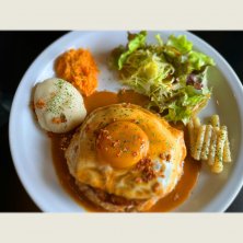 ランチっ ぼーりゅーみー! *ロコモコランチ 友達は、サーモンとアボカドLunch 地図付できなかったのでここで! 「THE MINGERING DINER(ミンガリングダイナー)」 総社市井出1125-4