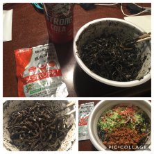 あんまりにも寒くて 外出る気にならなくて デリバリーで汁無し担々麺とバンバンジー 汁なし担々麺黒太麺2辛 このお店の店員さんは、みんな愛想良くて好印象。 イカスミの担々麺、やっぱ美味い! けど、夜は炭水化物とっちゃダメじゃん。