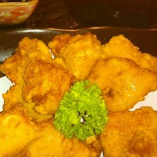 鶏から定食。 にんにく醤油が効いてて美味い!