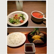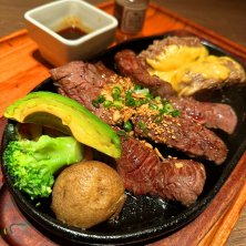 ラージ旨はらみ ステーキ&ハンバーグ^_^ 焼アボカド🥑 チェダーチーズ🧀 己の健康に圧倒的感謝🙏 本日のタンパク質補給🔥 近場のお店に参りました🤗 石窯で焼いたハンバーグが 美味しいお店です。 はらみステーキが 堂々登場!!ということで はらみ&ハンバーグに決定。 秀逸コンビです🤗 🥑&🧀の彩りも テンションあがります。 はらみウマーー🤤 “肉の旨味きわ立つハンバーグ専用塩” をかけたハンバーグうまーー🤤 幸せなヤーツ😇 最の高です😊 ご馳走様でした🙏😄
