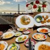うどん屋のワンプレート ・チキンのトマト煮込み ・紫いもの冷製スープ~揚げうどんを添えて~ ・桜鯛とベビーホタテのオムレツ ・唐揚げ ・サラダ ・ごはん~味ひじきを添えて~ ・ベリーワッフル~バニラアイスを添えて~ ・コーヒー なんといううどん屋らしからぬメニューだ! なに考えてんだアホなんか?(゜▽゜*) あ、でもね、チキンのトマト煮込み、下に麺が入ってた(笑) そこはうどん屋ならではだね!