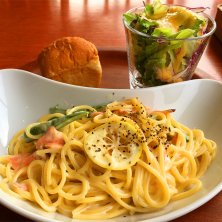 ちょっと贅沢なランチ。サーモンのレモンクリームパスタプレート1274円。
