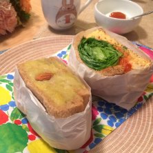 1つ前のpic、どうなってるのか気になったよね。 私も気になってたもん。w POTASTAは、お野菜のサンドイッチのお店なの。これを見ちゃうと、どんなわんぱくサンドもおとなしく見えちゃうでしょ。今まで見たどれよりもわんぱく。٩(๑`^´๑)۶ きっと聞かれるだろうと思って、見映えはアレですが、食べる前にワックスペーパーを剥がしてみたの。でも、挟んであるだけの普通のサンドイッチなの。でも、おいしいのよ〜♬ パンが薄いからほぼ野菜。お腹いっぱいになるけど、お肉のお腹いっぱいの感じとは違う。