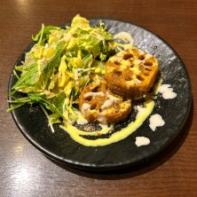 アロマズオブインディアにてランチ(5日ぶり9回目/2026年) フィッシュビリヤニ 1,750円 タンドールレンコン2p 900円 ビリヤニとは別に単品料理を頼もうと思って目に止まったのがタンドールレンコン。 スパイスでマリネしたレンコンをタンドール窯で焼いたもので、これがびっくりする程美味しい😳 マスタードが効いてピリ辛なのです! アミットシェフは和の食材をインド味にする天才だな!
