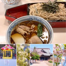 緑色のサクラ、御衣黄を見に行ったけどまだ三分咲きくらいでした。鬱金桜はまあまあ。 写真は鬱金桜と普賢象です。御衣黄、撮ってなかったw 今日はたまたまお釈迦さまの誕生日で甘茶掛けてきました。宗吾霊堂では初体験。甘茶のサービスはなくておこしいただきました。 お詣り済ませて門前の蕎麦屋へ。 今日は夫もいるので肉そばとザルを頼みました。
