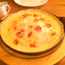ラザニア風パンケーキ 自家製のホワイトソースとミートソースを使い、ラザニアとパンケーキが一度に楽しめるメニュー! パンケーキは薄めのものが2枚、少しもっちりとしています。たっぷりのホワイトソースとチーズ、パンケーキの間にもミートソースが入っていてボリューム満点です。 パンケーキもソースも自家製らしいやさしい味がしました(*^^*)