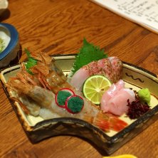 ガサエビと、ノドグロのお刺身 ノドクロ、背の部分は軽く炙ってあって、香り豊か