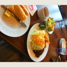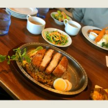 トンカツ🐷のせたキーマカレー🍛で ドライカレー〜チーズソース〜🧀 欲張り過ぎ^_^