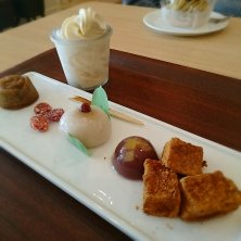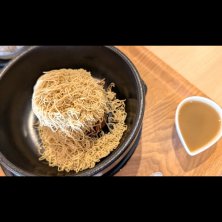 冬のモンブラン。 石焼きの入れ物にモンブラン(餅やアップルパイのリンゴなど入ってます)