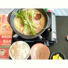 豆乳鍋。 今年初のゴルフ。 滅茶苦茶寒い🥶 豆乳鍋であったまる。 帰りたい😢