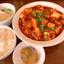 今日のランチ いつもの激辛麻婆豆腐ランチ 痺れる辛さ依存症になってます(*´╰╯`๓)♬