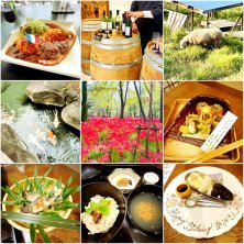 こんにちは♬ 今日は風もなく山梨の甲州地方は半袖がちょうど良いほどの暑さでした。 昨日から温泉三昧✨ 笛吹川温泉はアルカリ度が高いけれどからだに優しいお湯だそうです。 ぬるめのお湯にゆったり浸かれば日頃の疲れが溶け出すようでした。 投稿は昨夜の夕食① 茶懐石をテーマにしたお料理でした。 品数が多いので2連投です。 先ずはワインと一汁三菜から預鉢まで