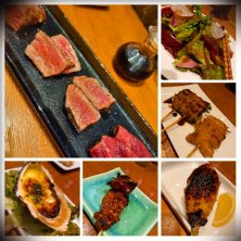 この週末の夜ごはん🍴 サラダ 串焼き カキのグラタン 特選肉のちょっとずつ盛り カメノコウ・ウチモモ・霜降りもも・友三角 友三角がダントツに美味しかった✨カメノコウも👍 暫く行ってなくて、最近2回目だけど… もうテイクアウトで良いかな😅