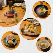 先月オープンしたばかりのお店に行ってきました♪ ・サラダ(お通し) ・刺身の盛り合わせ ・だし巻き玉子 ・のどぐろの煮付け ・ふぐの唐揚げ 日本酒は ・仙禽 ・盾野川 を頂きました。 店主イケメンです(*´∇`*)