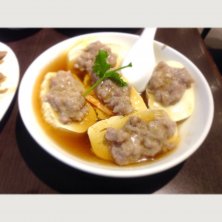 豆腐に肉餅乗せ。
