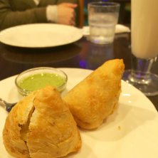 久しぶりにカラオケ行って、その後こんばんわご飯に牛角に行ったんだけど一時間半待ちだったから諦めて友達のお父さんオススメのインドカレーへ。 店内ガラガラだったw 私がインド料理のお店に来たら必ず食べるサモサ(笑) これは私にとってマストだからね(笑) ちなみに550円ww