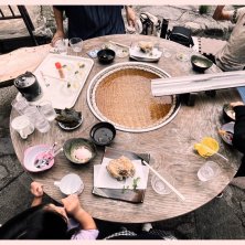 2025年9月13日 ランチ 流し素麺 (…流す前の写真) ニジマスの塩焼き ニジマスの唐揚げ 温泉卵 妙高と黒姫の山あいにある苗名の滝へ。 滝を見に25分かけてみんな頑張ったよ。 滝への入り口のところのお食事処で流し素麺。関川が横を流れていて気持ちいい😊 流すのも、それを取るのも、食べるより楽しそうでよかったね☺️