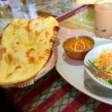おひるごはん ナンでかい🤣🤣🤣 日替わりカレーはしいたけとチキン♥️ 辛さ普通🌶 サラダにスープにドリンク☺︎ ドリンクはラッシーにしました︎💕︎