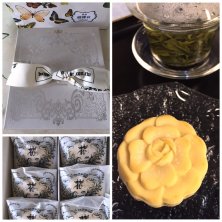 親友ちゃんがお取り寄せしてくれた、台中にある《日出》の白鳳花餅禮盒 lunaちゃんお気に入りの、上品な白あん味の可愛いお菓子には、台湾緑茶を淹れていただきました♡ 包装紙やリボン、色彩やデザインが可愛過ぎ(。´艸`。)