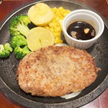 ハンバーグステーキ パン食べ放題付き 1,969円 子ども達の希望でコチラの店に。 ハンバーグは普通。。。いや、味が薄い。。。 妻の頼んだアヒージョも薄かった。 サイゼの方が美味。 まぁパンは焼きたてで良い。個人的には明太マヨが美味だった。